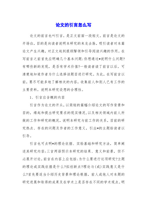 前言也叫引言,是注释前面一段短文。前言是论文的开场白,目的是向读者说明本讨论的来龙去脉,吸引读者对本篇论文产生爱好,对注释起到提纲掣领和引导阅读爱好的作用。