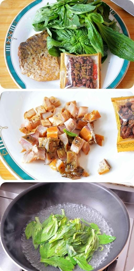 3、将腊鱼切小丁,韭菜切小段;