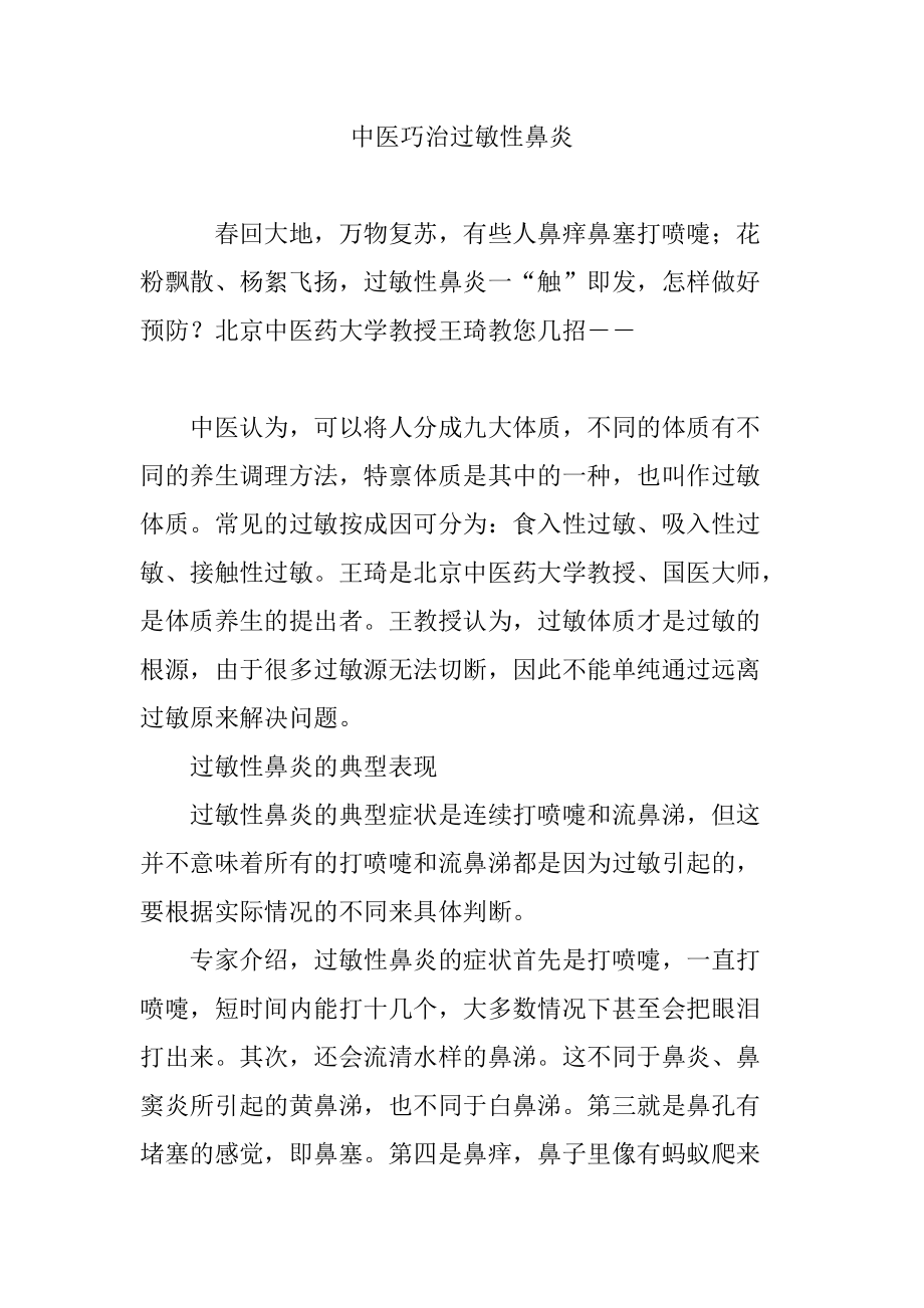 过敏性鼻炎的中医治疗方法