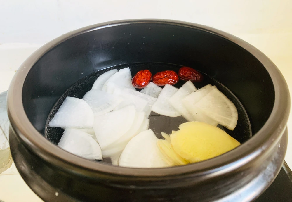 材料:白萝卜1个,大枣若干。调料:生姜、蜂蜜适量。