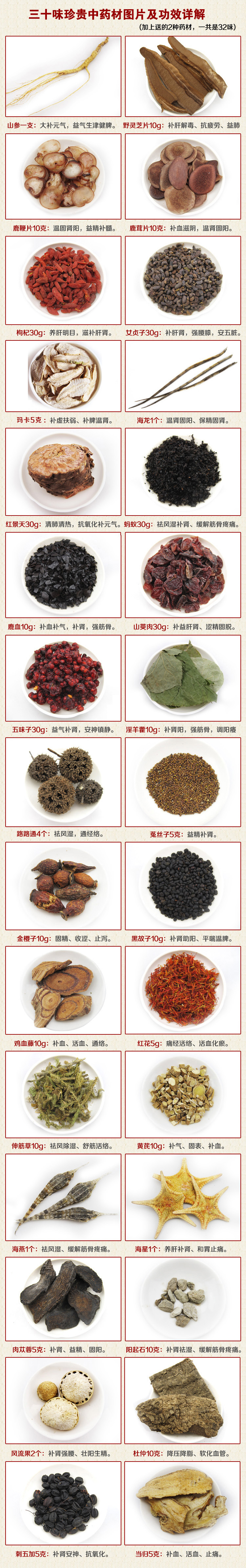 泡酒料功效作用:补血生精、健脑增髓、补肾助阳、腰酸腿痛、四肢无力、气血两亏、视物眼花、神志恍惚、抗病防衰老等症。
