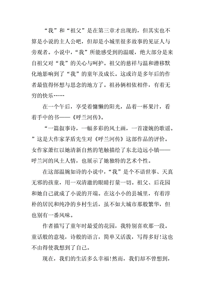 开学的时候,我利用课余时间看了小红写的《呼兰河传》。内容丰富,引人入胜。印象最深的是几个小故事。