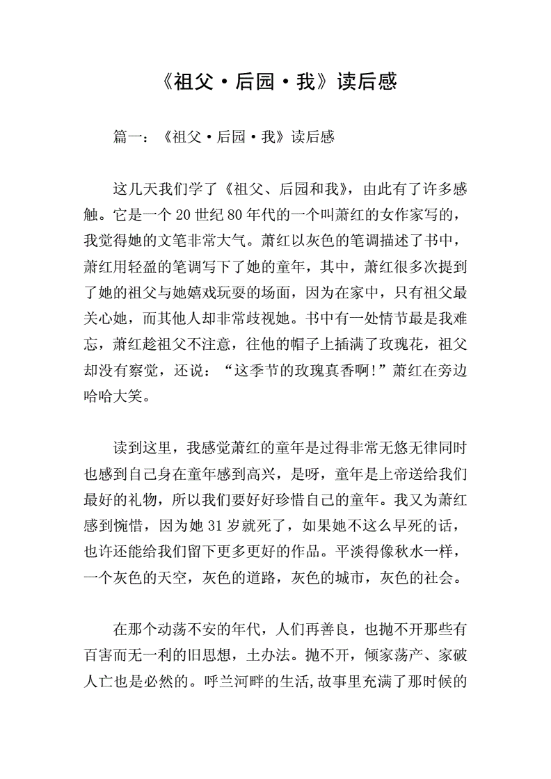 读这本书时,愉悦陪着沉痛,随着小主人公萧红的脚步,我偷窥到旧社会的.腐败一角,很庆幸那只是萧红的童年。