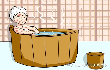 药浴最好不要在饭前饭后半小时内浸泡,水温不宜过高,老年银屑病患者如有心血管疾病需要家属陪同。