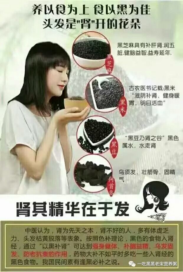 发为肾之华,就是说头发是肾的花朵,是肾的外现。肾又是主黑色,所以头发是否乌黑靓丽,实际上跟肾的好坏密切相关。