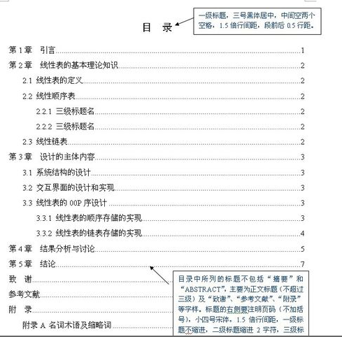 5.目录:写出目录,标明页码。正文各一级二级标题(根据实际情况,也可以标注更低级标题)、参考文献、附录、致谢等。