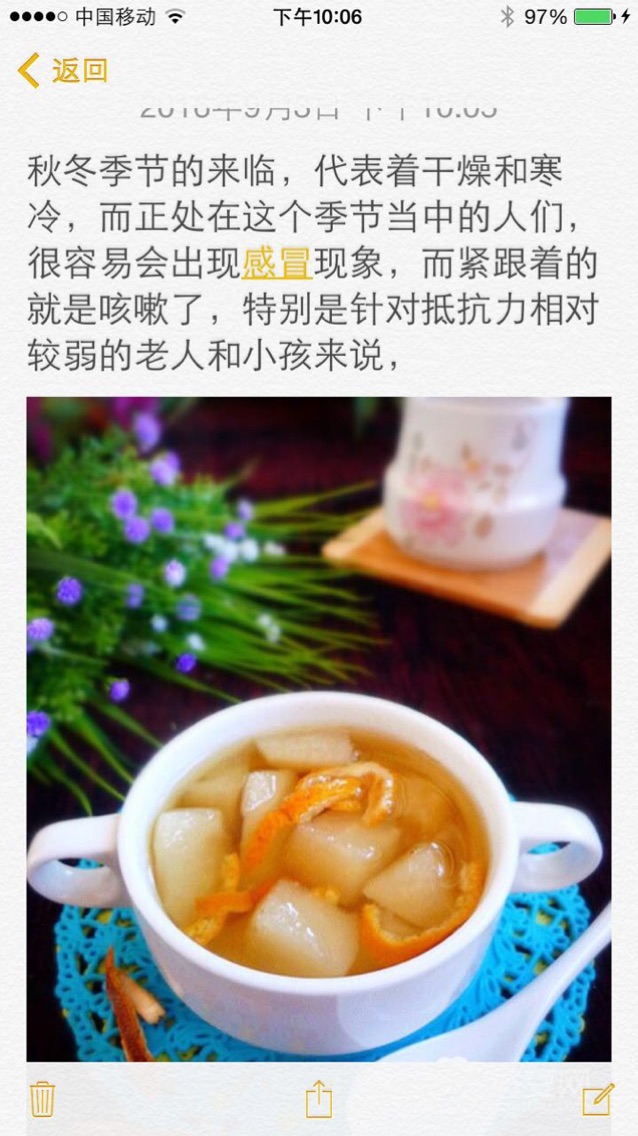 红枣、生姜、红糖都是发暖的,而且都对身体有益。白萝卜大家都知道,对治疗感冒有一定作用。只是在用量上还要根据小儿年龄和口味作适量增减。 【附1】咳嗽 咳嗽,咳嗽要分为有痰的咳嗽和无痰的咳嗽(就是干咳),我这个方法对于干咳没什么作用,对于有痰的咳嗽非常灵光,屡试屡爽。 方法也很简单:去买一个白萝卜,一定要白萝卜哦,刚买回来后切一段,划多少自己定,刚没关系的,然后切成丁,生的,凉然后把萝卜丁放碗里或杯里都可以,然后倒上几勺蜂蜜,最好是紫云英蜂蜜,也没规定多少,反正根据你萝卜丁的量来定,二三勺这样吧。然后放着,千万不用煮哦。 放上四小时之后,萝卜汁水就出来了,这时候用勺子去搅一搅,就是把蜂蜜和萝卜汁水搅匀了,然后旁边准备一杯温开水,然后把这种搅匀了的蜂蜜萝卜汁水倒入温开水中,就可以把这个水喝下去了,一天喝上三四次,一般很厉害的咳嗽当晚就会改善,尤其是晚上咳嗽得很厉害的幼儿能明显感觉到。 喝上三四天就好了,厉害的话一天中的次数喝多点,汁水浓点。几个月的宝宝都可以喝,放在奶瓶中喝就可以,比吃中药好多了,有痰的咳嗽效果很好。【附2】发烧 生病的宝宝越来越多,无非就是感冒发烧、咳嗽等,凡咳嗽久了还容易引起支气管炎,甚至肺炎,有两招小小的办法对付咳嗽和发烧,效果特别好,妈妈们都可以记下,如果遇到自己家的宝宝碰上这种情况了可以别急了,自己照我说的去做下,也很简单。