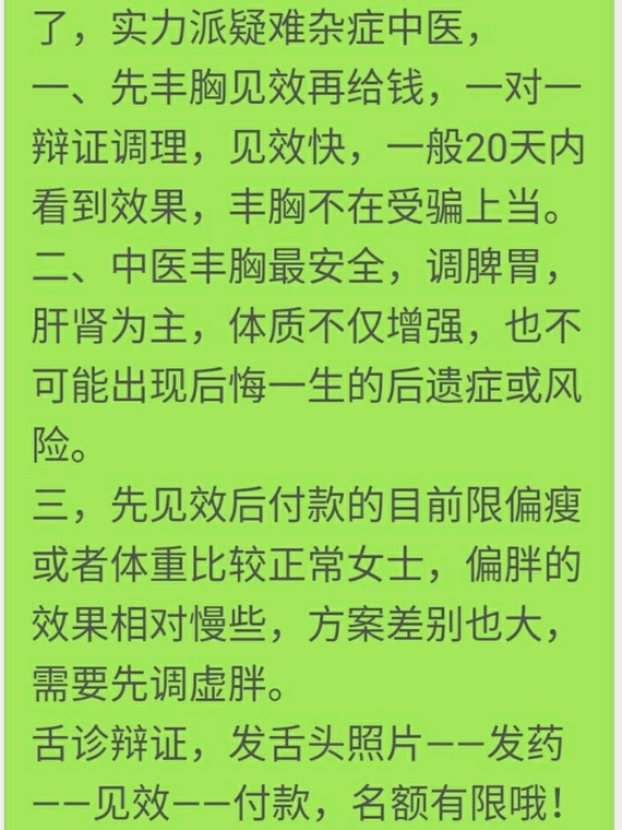 此中医丰胸最有效的药方对青春期中发育的少女们有促进发育的功能,对其他女性则有预防胸部下垂、外扩、坚挺的功效。