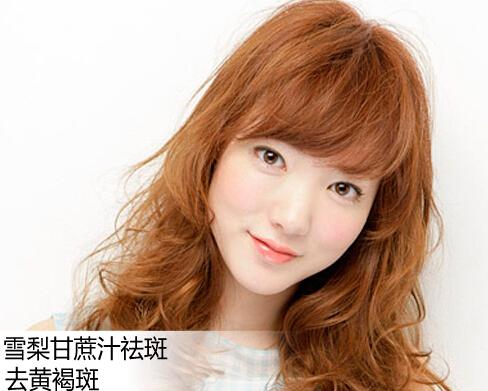 雪梨甘蔗汁祛斑:雪梨,甘蔗,葡萄,蜂蜜。将雪梨、甘蔗、葡萄洗净搅汁去渣,与蜂蜜混合装瓶备用。早晚各吃10毫升,可去雀斑、黄褐斑、黑斑。