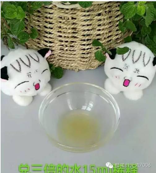4、 脸部斑严重的可以晚上清洗之后直接抹原液,斑不重的或者皮肤干燥的有细皱纹的可以用3毫升醋蛋归元液兑9毫升水用压缩面膜纸做面膜,40分钟揭下来。