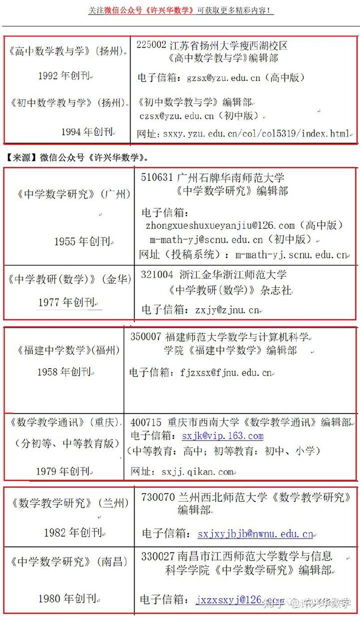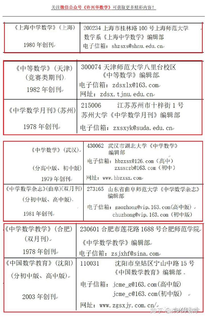 中学数学论文期刊投稿大全(附教育期刊投稿大全),值得收藏!(许兴华数学)
