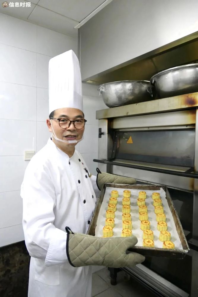 随着流水化生产线逐渐代替手工出品,手作月饼如今在市面上已经买少见少。说起当年每逢中秋节前,酒店后厨所有员工都忙着做月饼的场景,在白天鹅宾馆任职30年的谭广燐师傅仍历历在目。“当时酒店所有实习生,无论是哪个部门的,都会被抓进后厨帮忙。大家24小时不间断轮班做饼,那段时间,酒店里总会弥漫着一股烤月饼的香味,回到家衣服上也带着牛油香味。”