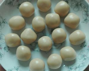 在醒面的过程中可以去准备豆沙馅,或者豆沙馅提前一天准备好,然后放入冷藏待第二天使用比较方便,因为制作豆沙馅的过程时间比较长(《豆沙制作法》请进我的其它作品中查找制作方法)将制作的的豆沙馅揉成一个35克,然后用保鲜膜包起来,防止风吹干