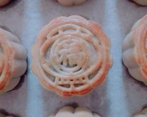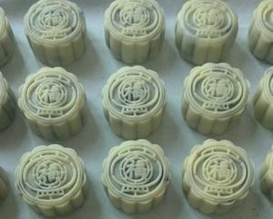 快包好时,提前将烤箱预热180度,大概十分钟,然后把包好的月饼表面喷上少许水,防裂,再将其放进已预热好的烤箱里的中层,180度烤大概十分钟定型,这个时候将一个鸡蛋的蛋白和一个鸡蛋里的半个蛋黄搅拌均匀,然后过滤一下,制作成蛋液,然后将烤好的月饼取出,把准备好的蛋液刷在月饼表面上,薄薄的一层就可以了,不要刷太多蛋液,然后再放进去烤差不多十五分钟左右就可以出炉了,刚出炉的月饼也是软的,得冷却后变硬再食用,回油两天后又会变得有点软,纯属正常~因为没有添加剂,建议做月饼的馅料也不要太软,不然烤的过程会塌,变形(烤箱根据个人不同的烤箱掌控,建议第一次做温度不要挑太高,150~180 度直接,过程中慢慢观察,如果温度过高就挑低些,之后再做就有把握了)