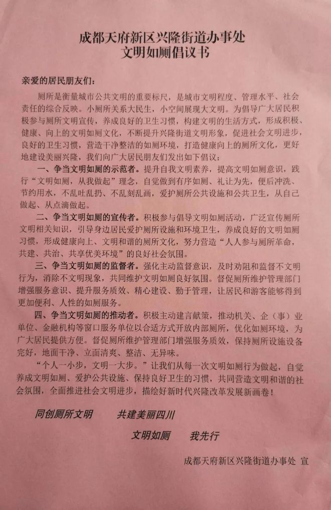 市民素质是城市之魂,每个市民的一言一行、一点一滴无不折射出个人的修养、无不展示着城市的形象。当前,全区正在进行省级文明城区创建活动,营造清洁优美的生活环境,构建舒适顺畅的生活秩序,是我们共同的期盼和责任。为此,我们发出如下倡议:
