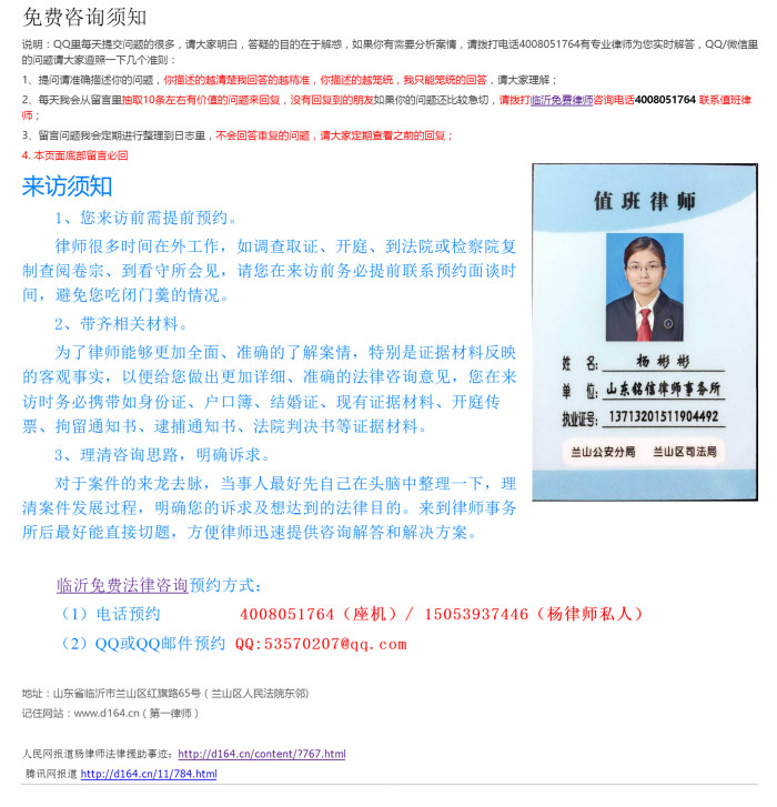 如果您面临的问题较为复杂,请电话联系【临沂杨彬彬律师】详细咨询。