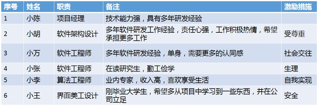 我们采用项目型组织形式,规划了项目组基本成员 18 人,其中项目经理1 人,系统架构 1 人,系统分析 2 人,测试 4 人,系统开发 7 人,产品经理 1 人,系统集成 2人。之后,我们制定了责任分配矩阵,将工作包、活动分配到具体的团队成员,使团队成员对自己的业务有了进一步理解。同时,我们还制定了详细的人员配备管理计划,明确了人员招募途径、培训需求及认可的奖励计划。最终我们汇总、整理、完善形成了该项目的人力资源管理计划。