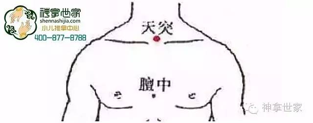 【按摩手法】用中指指腹按揉天突穴并做环状运动,按摩时应控制力度,不要伤到喉咙。